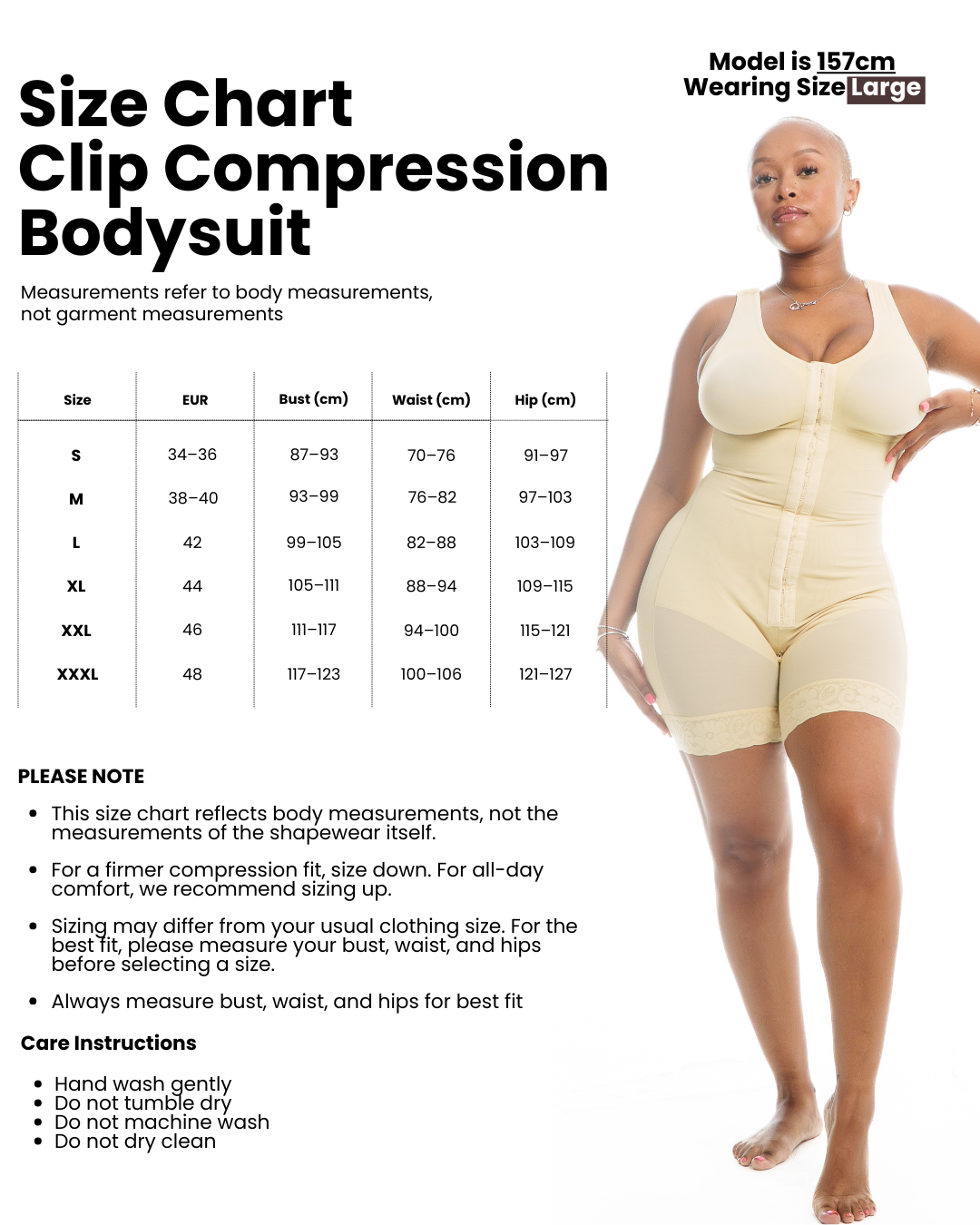 Designed to hold, support, and smooth in all the right places. This high-compression bodysuit faja offers firm tummy, waist, and hip support while still feeling comfortable enough for everyday wear - with a bathroom-friendly crotch zip for easy, stress-free use, especially during postpartum recovery.